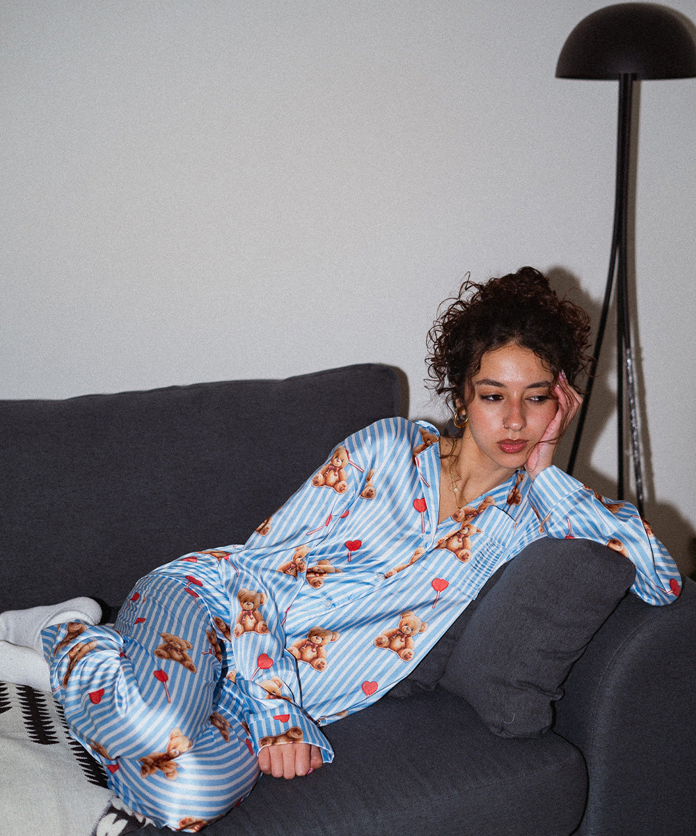 Teddy Satin Pyjama Set Blue