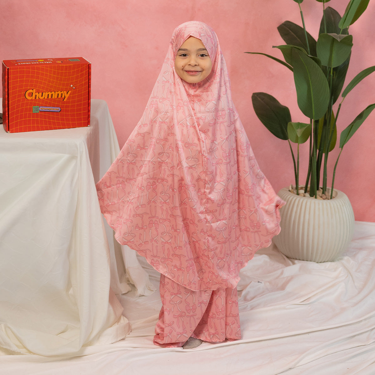 Kids Pink Bows Satin Isdal Set